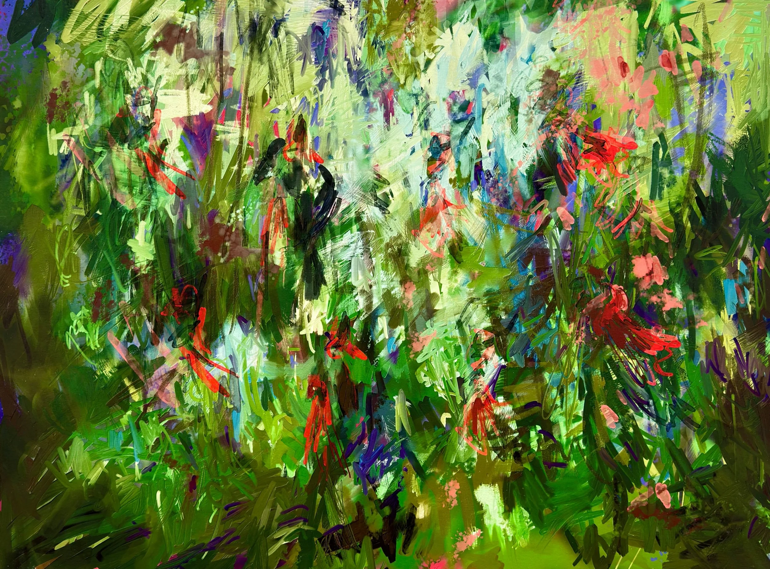 Tracey Halvorsen: Cardinals and Crows in the Garden